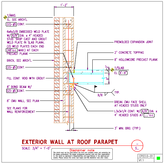 CP03.0 - Hollowcore Roofs on 8 inch Masonry Walls