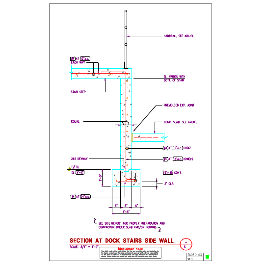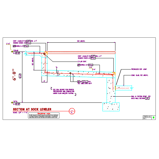 AutoCAD dock wall foundation details, dock leveler details and dock stair details.