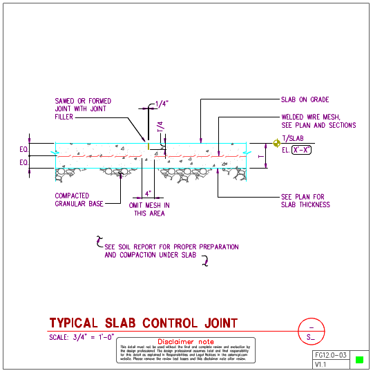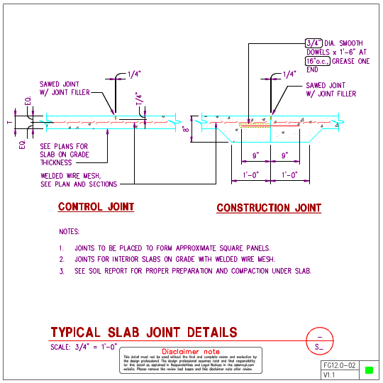 AutoCAD slab joint details for slab on grades control and construction joints.