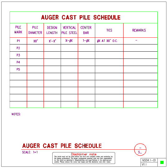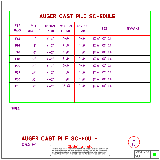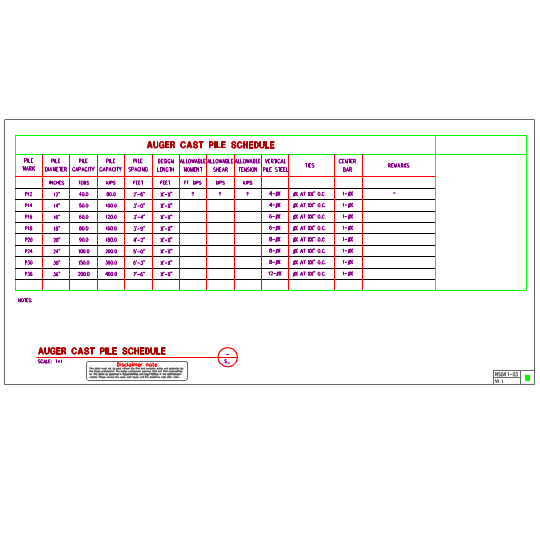 AutoCAD foundation pier and pile schedules for structural drawings.