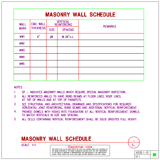 More information about Masonry Wall Schedule ... Masonry Wall Schedules: